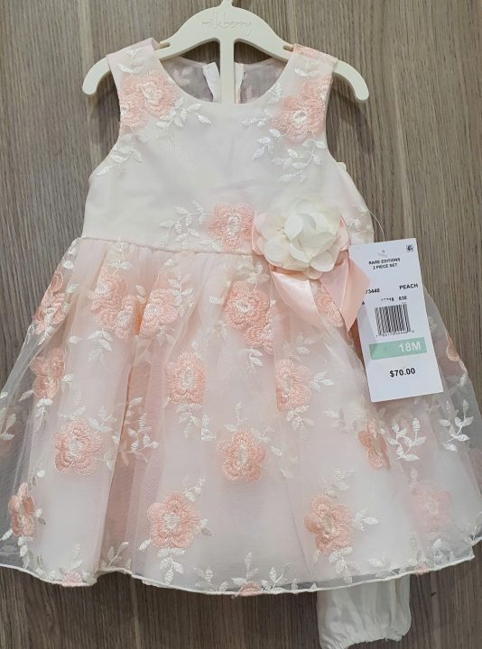 Đầm ren công chúa thêu hoa bé gái 18 tháng đẹp màu phấn size 18M hiệu Rare Editions hàng xách tay mỹ