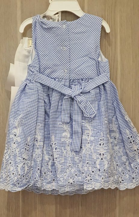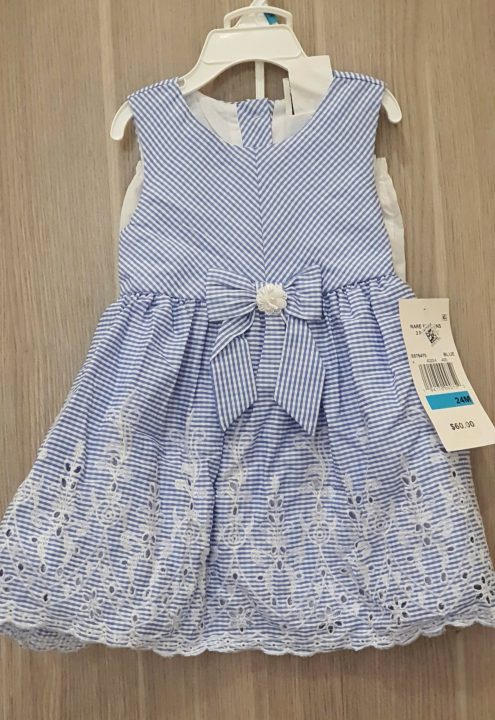 Đầm xòe công chúa bé gái cotton không tay thắt nơ eo 1-1.5 tuổi màu xanh size 6-9M 18M hiệu Rare Editions hàng xách tay mỹ